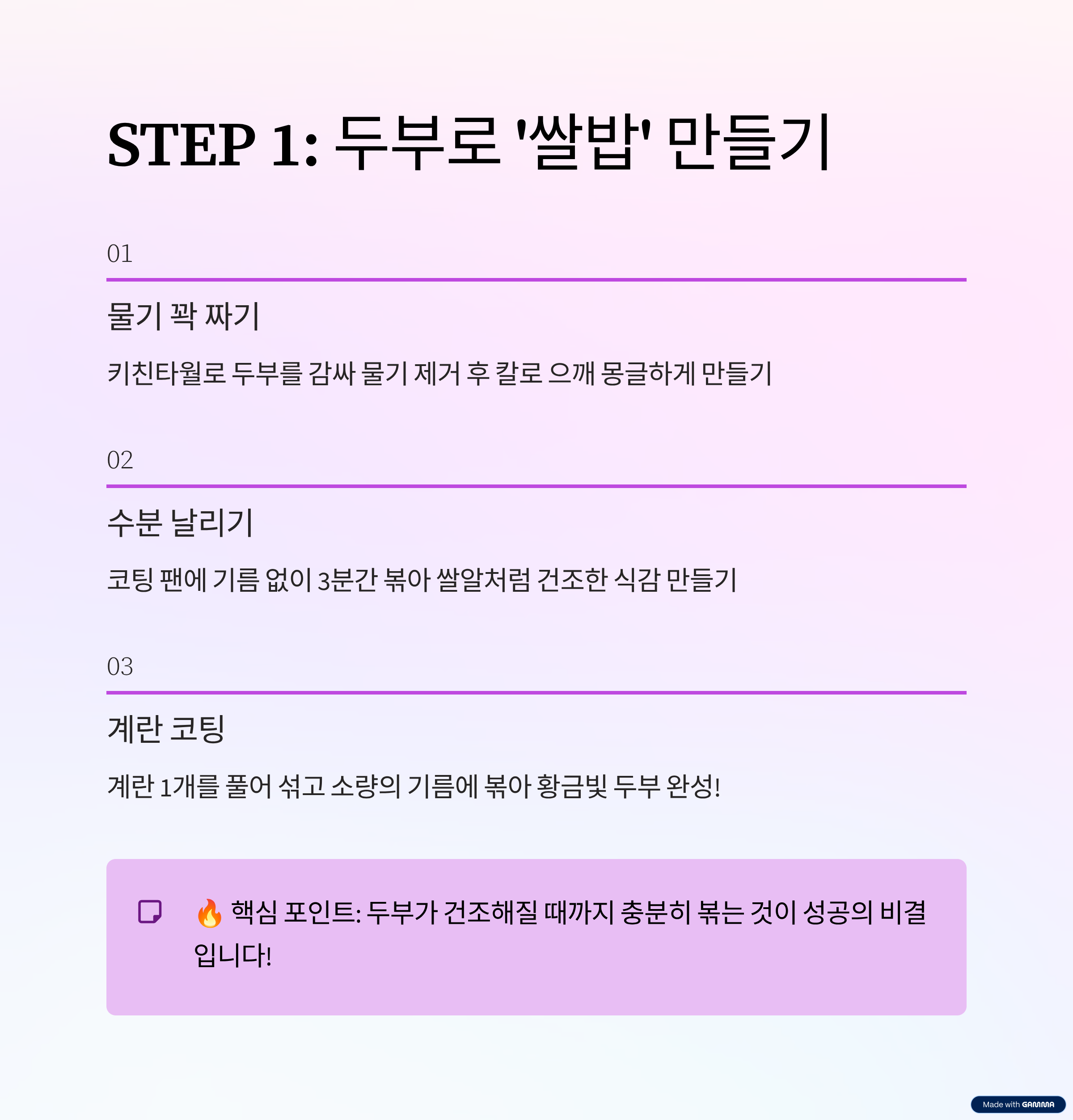 🍚 STEP 1. 두부로 '쌀밥' 만들기 (황금 비법)