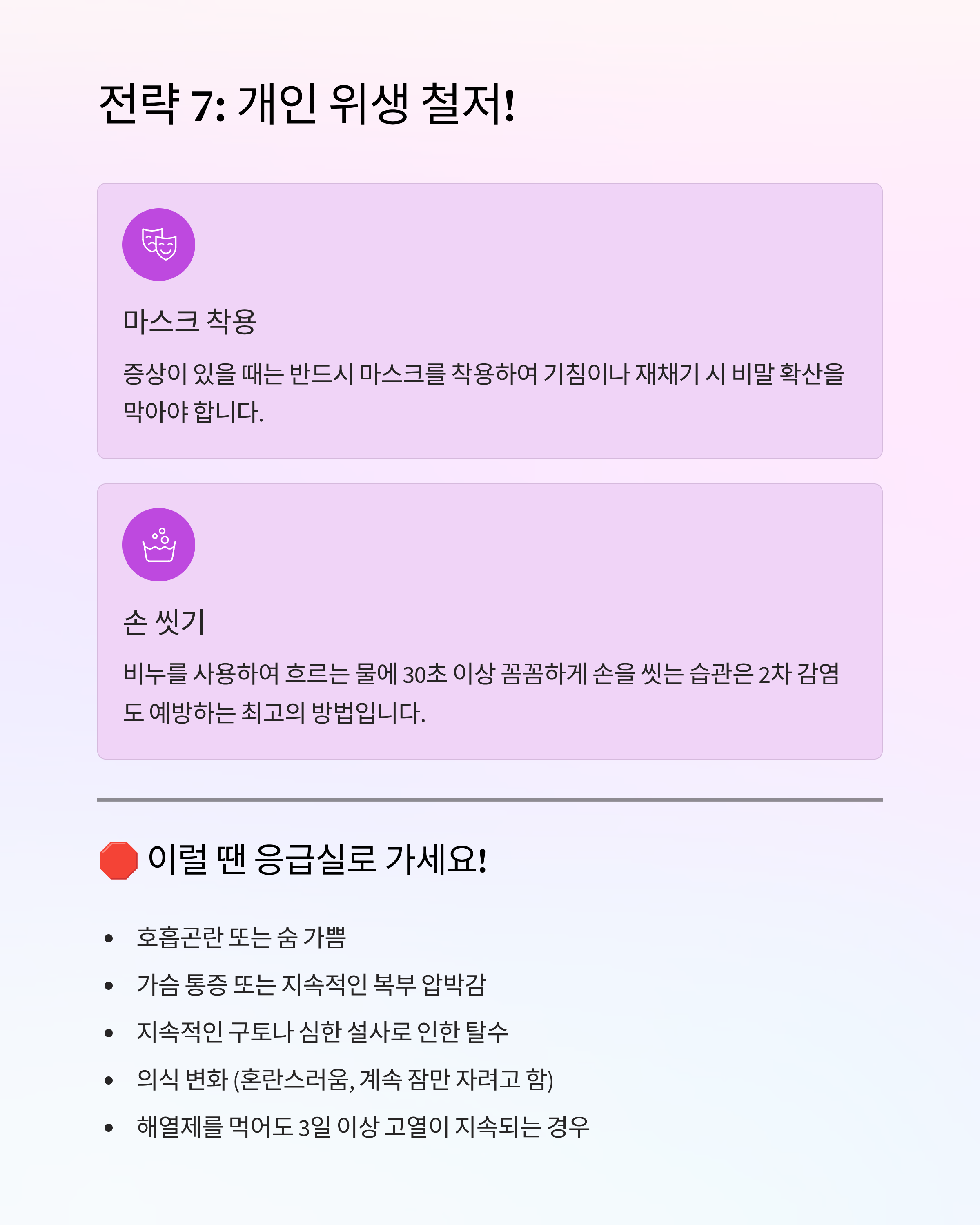 7. 🧼 개인 위생 철저! (2차 감염 방지)