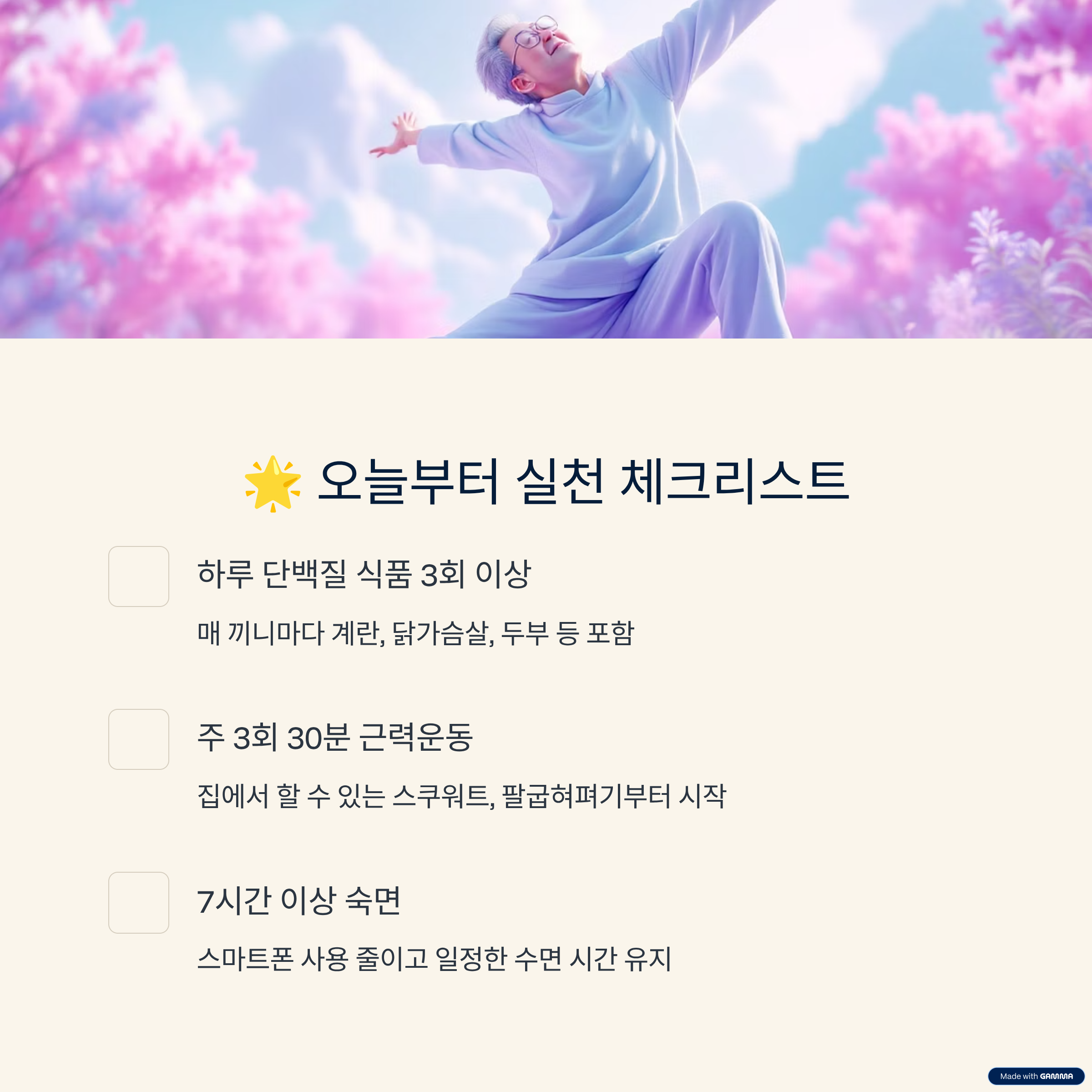 주 2~3회 스쿼트·런지·덤벨 운동 + 빠른 걷기·수영·자전거