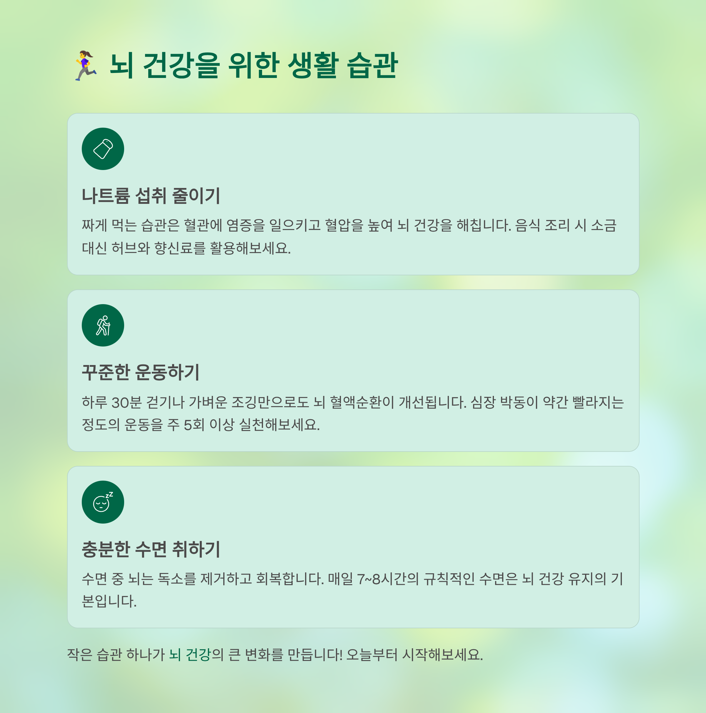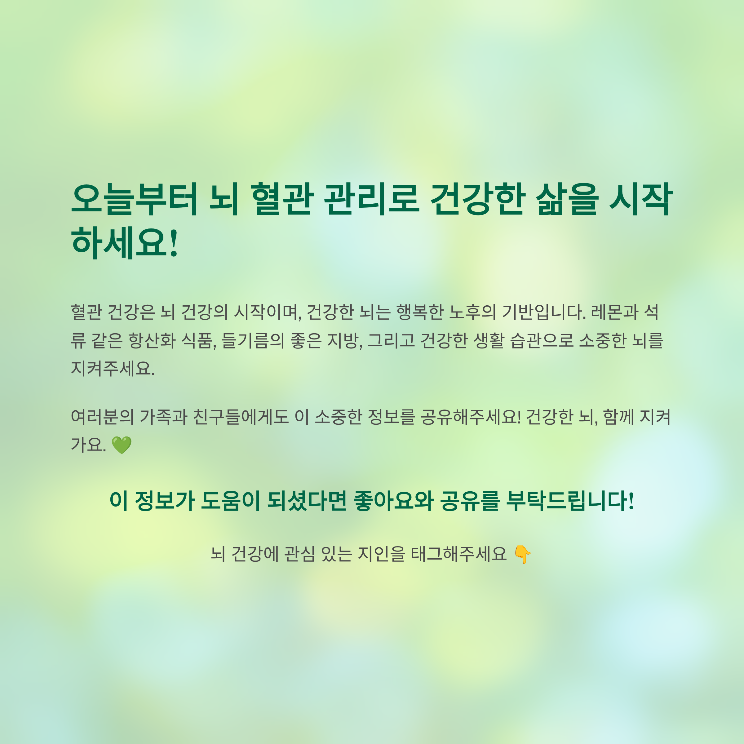 그러니 뇌 혈관을 튼튼하게 관리하는 것이야말로 건강한 삶의 시작이에요! ✨