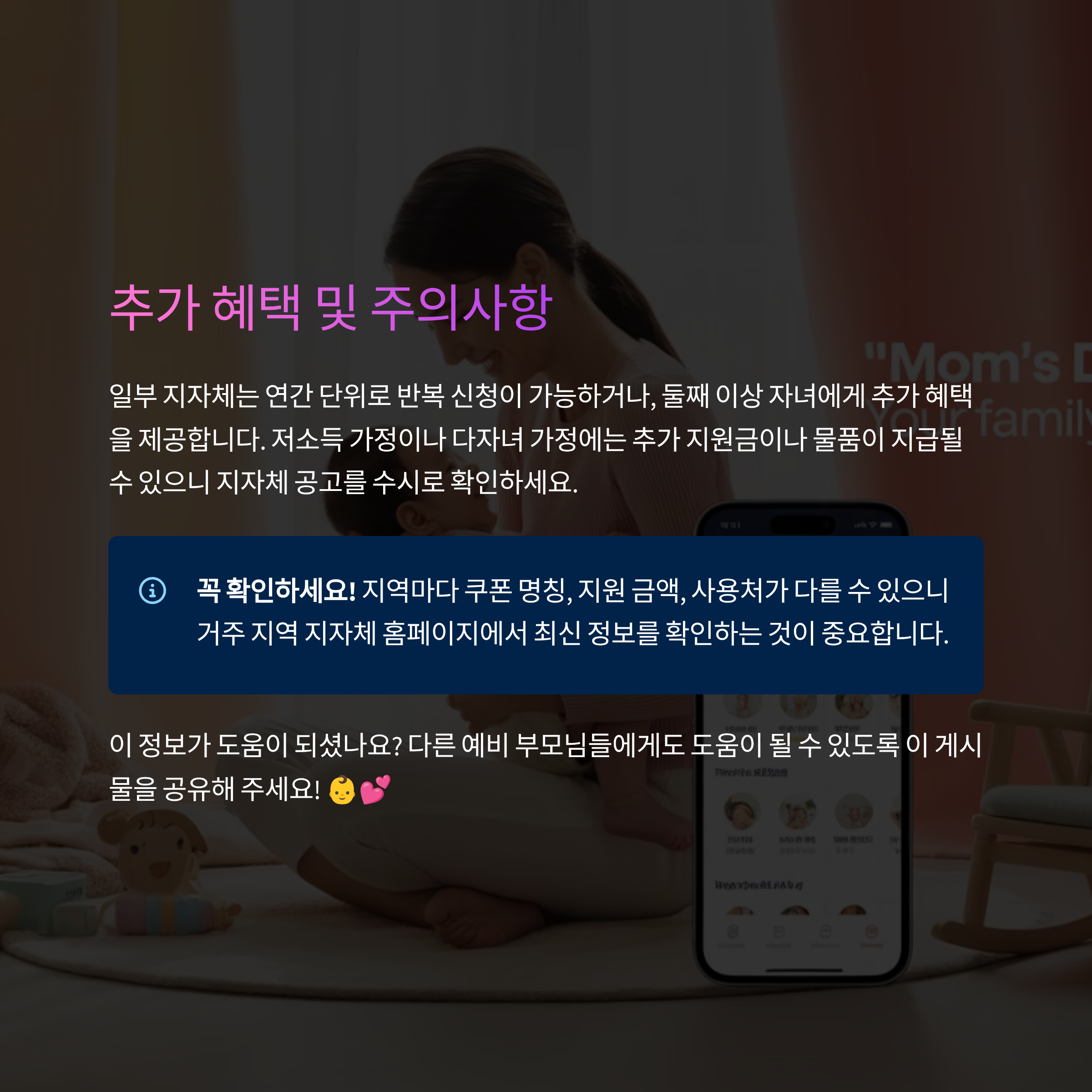 둘째 이상 자녀에게 추가 혜택을 제공하기도 합니다.