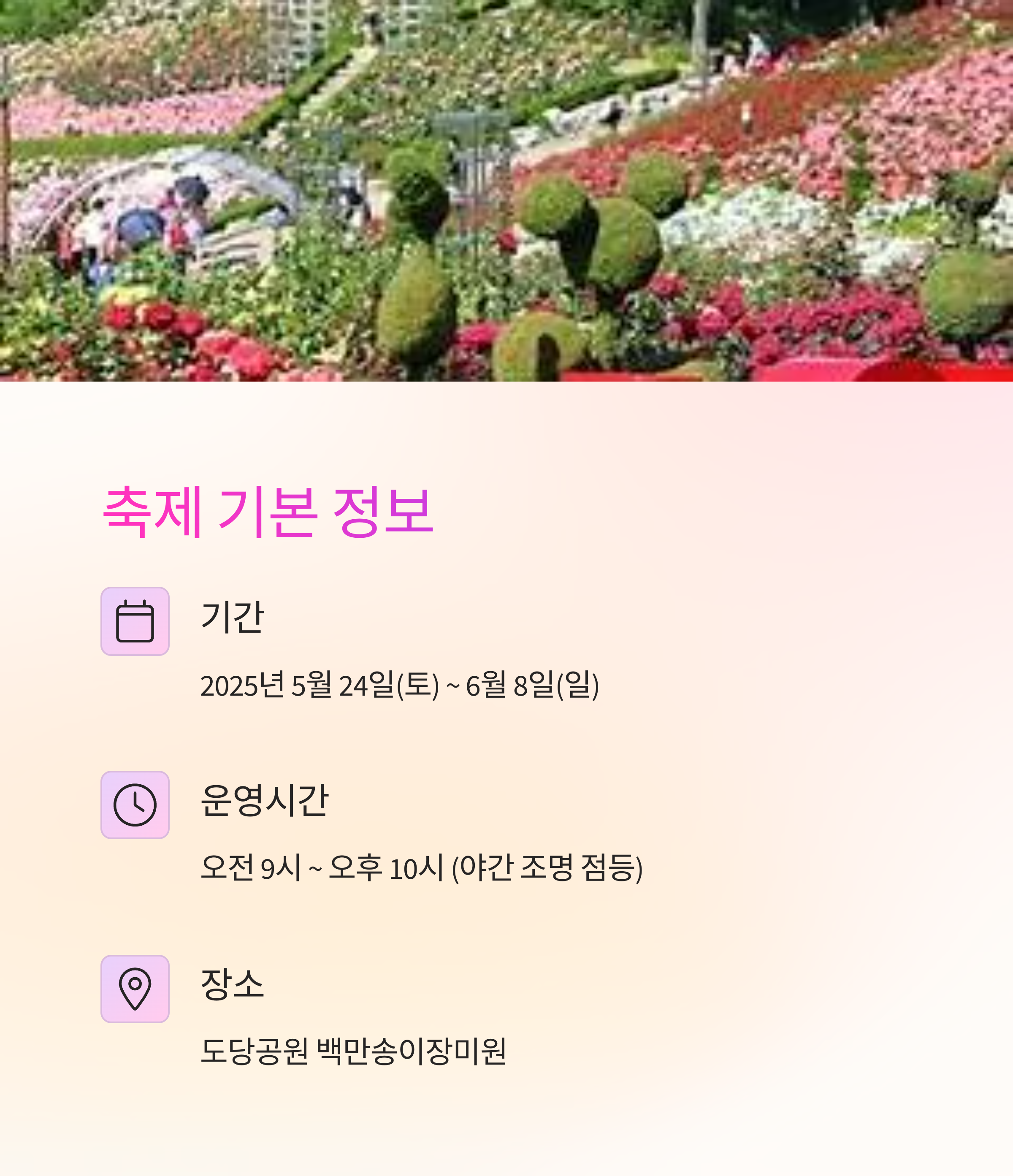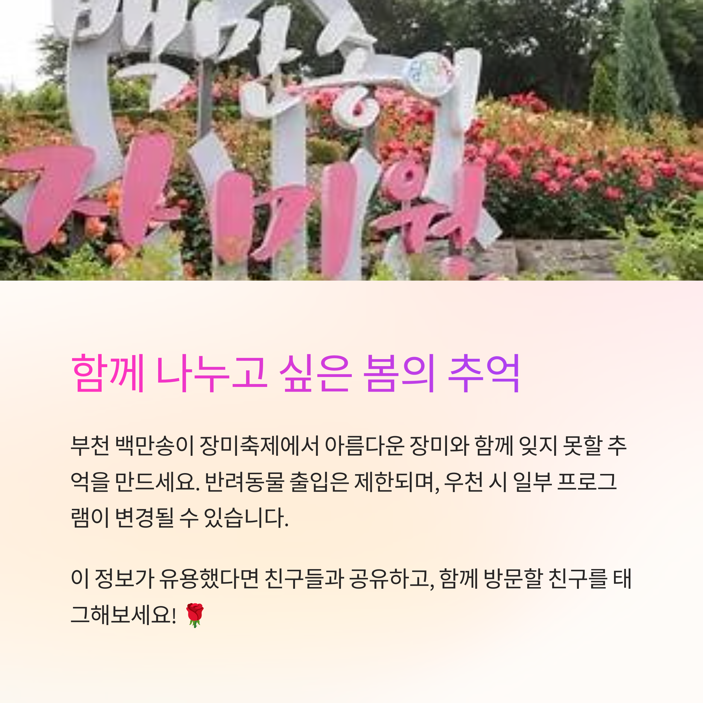 - 장소: 도당공원 백만송이장미원 (경기도 부천시 오정구 성곡로 63번길 99)