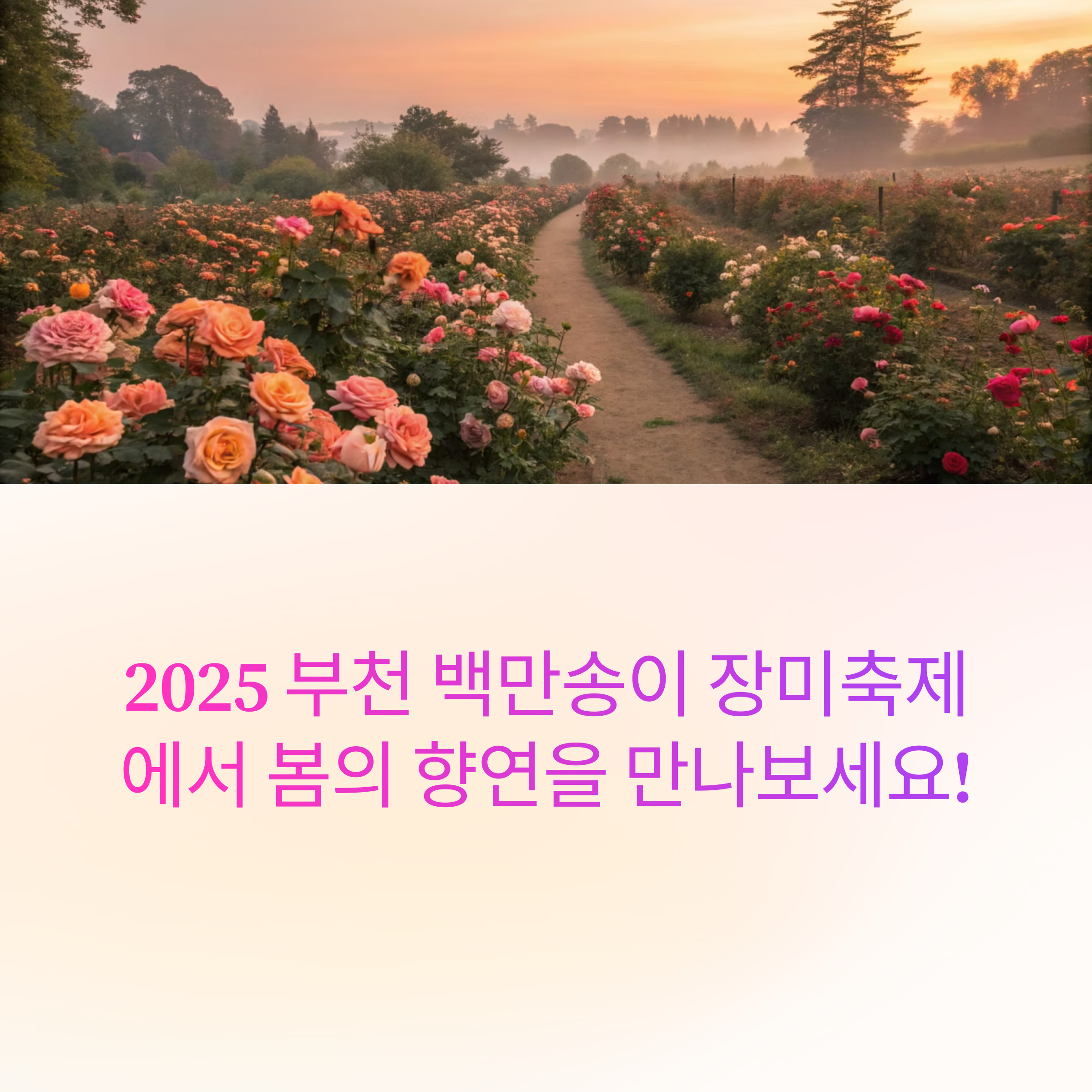 2025년 부천 백만송이 장미축제는 5월 24일(토)부터 6월 8일(일)까지 도당공원 백만송이장미원에서 개최됩니다.