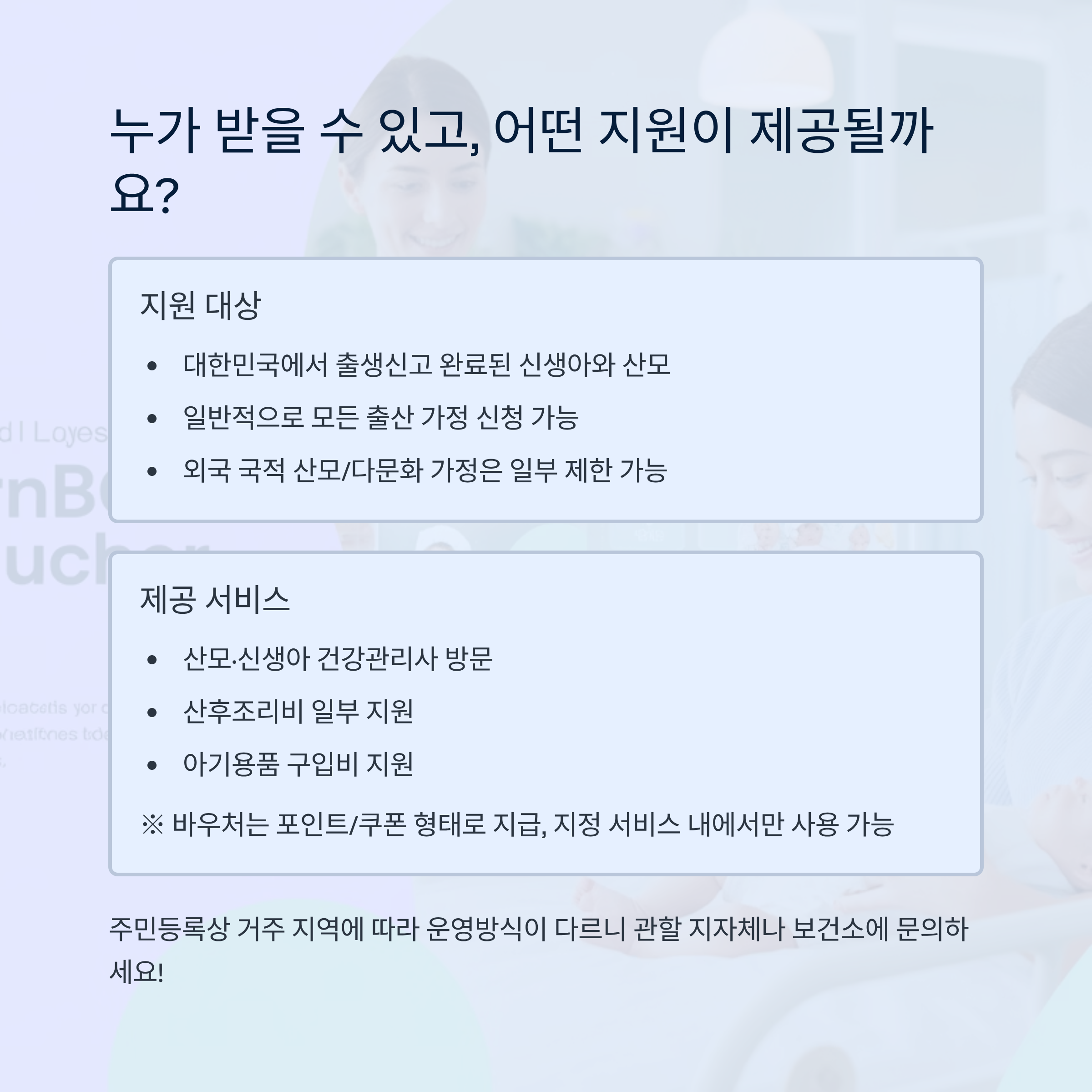 신청할 수 있으며, 외국 국적 산모나 다문화 가정의 경우 일부 제한이